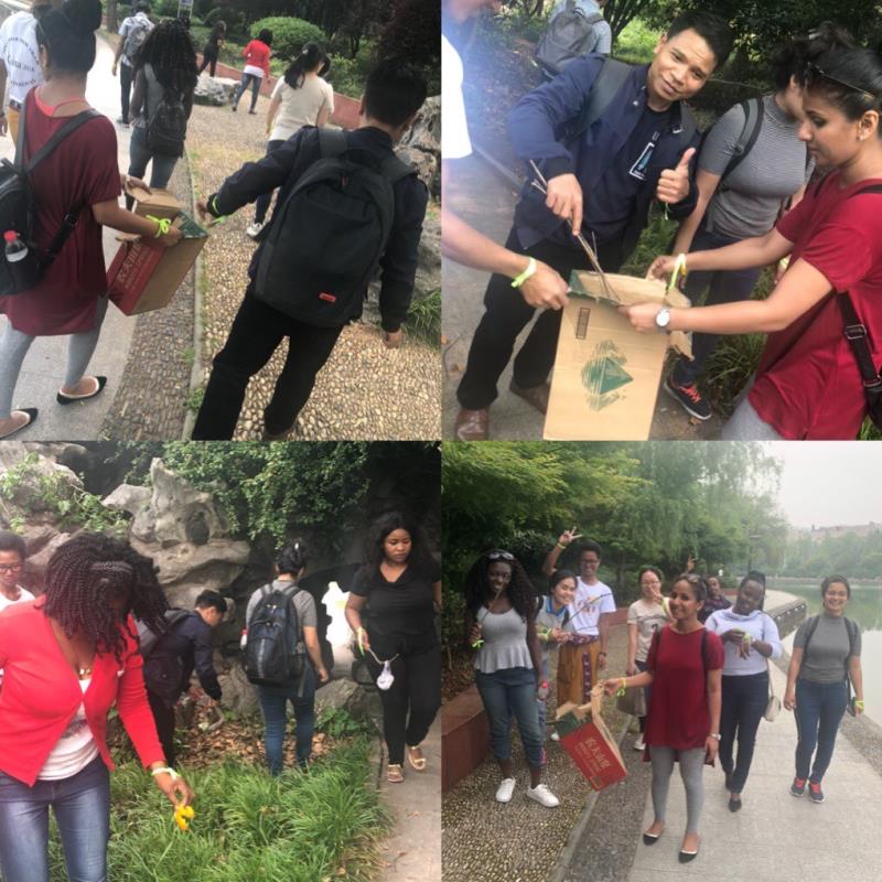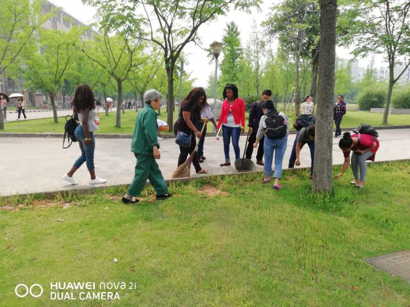 2018年4月27日下午,为感受劳动节节日气氛,在浙江师范大学校园里,教育学院留学生积极参与志愿者清扫活动,体验"中国式"劳动节,感受中国劳动文化以及环保带给大家的深刻意义。