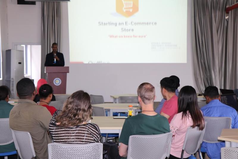 本次课程的主讲人浙师大MBA学生乐风,乐风作为一名在中国学习生活的国际学生,通过个人的努力和付出,一步一步建立了个人的电商网站,在这个过程中,乐风克服了种种困难,他坚持不懈、攻坚克险的精神为广大学生树立学习的好榜样。