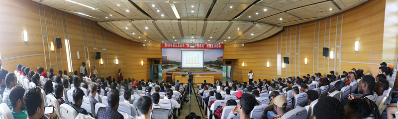 4月19日下午2点半, 2018浙江省高校“新时代中国道路”校园宣讲活动在浙江师范大学外国语学院报告厅举行。该活动由浙江省教育厅主办,浙江师范大学承办。浙江大学博士、上海财经大学博士后、浙江工业大学马克思主义学院易继昌教授作了题为“新时期中国道路”的讲座。讲座由浙江师范大学国际交流与合作处副处长毛锡龙主持,来自浙江师范大学、金华职业技术学院、义乌工商学院、丽水学院、衢州学院的300余名国际学生参加了此次讲座。