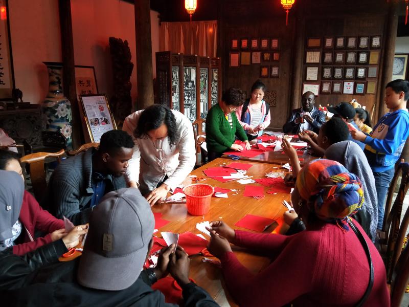 4月14日, 在一个细雨蒙蒙的日子里,法政学院的15名留学生相聚一堂,一起参观了金华市博物馆和剪纸博物馆。在参观过程中,留学生们了解了大量金华独有的历史文化,像黄大仙、金华火腿、古越人等等,并感受到了金华丰富的人文气息。除此之外,在剪纸博物馆内,留学生们不但学习到了许多与剪纸有关的知识,还在陈大师的带领下亲自动手尝试制作剪纸作品。整个过程氛围融洽,留学生们也都积极配合相关工作人员的安排,一起度过了一段快乐的时光。