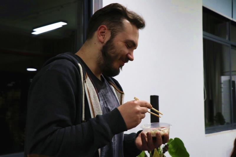 期间,来自天南地北的同学各显身手,饺子的造型当然也是五花八门。留学生们虽然是第一次包饺子,却十分认真地在一旁观察学习,跃跃欲试,很显然,他们对中国的这种美食制作非常感兴趣。席间,气氛温馨融洽,大家都沉浸在这份乐趣当中。