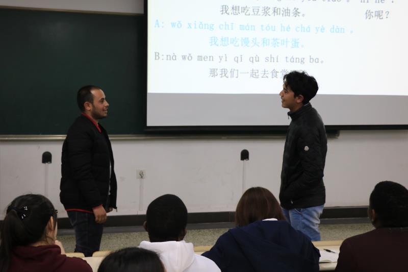 中国文化博大精深,美食文化是其中不可或缺的一部分。曹鑫玉同志从“中国味道”出发,首先向大家介绍了中国的一些地道美食,之后通过视频和美图展示其制作过程和技艺传承。留学生们在赞叹中华美食多“滋”多彩的同时也惊叹于其制作的精细和讲究火候。紧接着曹鑫玉同志介绍了与同学们日常生活息息相关的浙师特色早餐,特别强调师大早餐不仅种类丰富且价格平民,留学生们的惊叹一阵接一阵,纷纷表示以后一定会多去食堂品尝品尝。之后曹鑫玉同志邀请了多组留学生上台演示在食堂买早餐的情景,大家都非常踊跃,乐在其中。