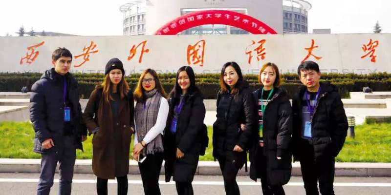 阿艺达(右三)作为浙江师范大学的优秀留学生代表赴西安外国语大学参加汉语大赛。