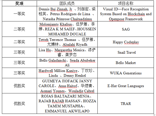 各团队项目充分发挥了互联网在促进产业升级中的作用,促进了互联网与贸易、教育、消费、生活、旅游等方面的深度融合,展示了我校中外学生的发散思维和开阔眼界。经过激烈角逐,最终评选出一等奖1项、二等奖2项、三等奖3项、优秀奖2项。