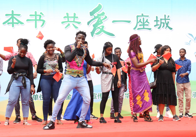 草长莺飞四月天,正是读书好时节!2019年4月21日,在第24个“世界读书日”到来之际,由中共金华市委宣传部、金华市文化广电旅游局主办,金华市图书馆承办的2019年金华市第五届全民阅读节启动仪式暨阅读马拉松活动,在婺江江畔美丽的燕尾洲公园拉开序幕。金华市委、金华市人民政府相关领导出席了启动仪式。本届阅读节的主题是“同读一本书,共爱一座城”。国际学院24位来自世界各地的留学生应邀参加了启动仪式,共同演唱歌曲《我爱你,中国》,献礼新中国成立70周年,并助力本次阅读节启动仪式。