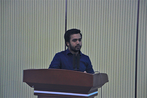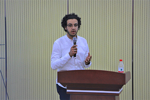 HAIDAK GASTON同学以“设计一种新型轴向活塞发动机全功率试验台,对欧科朗实验室进行了优化”为主题,分享自己在设计此项目过程中的经验。他通过演示COURANT测试平台、过渡到新设计、新试验台设计、新设计的比较和优点等环节详细介绍了这项设计的工作理念和设计思路,开拓了同学们在机械专业的视野。
