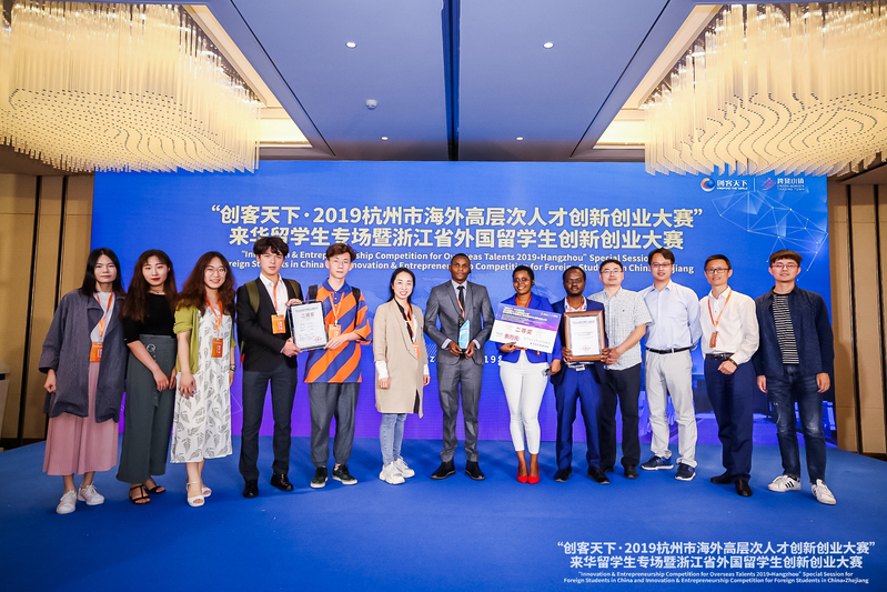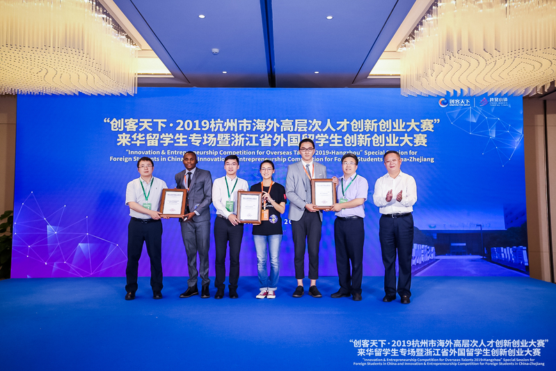 6月2日下午,“创客天下·2019杭州市海外高层次人才创新创业大赛”来华留学生专场暨浙江省外国留学生创新创业大赛决赛在跨贸小镇举行。省教育厅副厅长于永明,市委组织部副部长、市委人才办常务副主任陈键,市人社局副局长黄菊火,市科技局党组成员、总工程师楼立群,区委副书记、区长柴世民等出席活动并为获奖团队颁奖。
