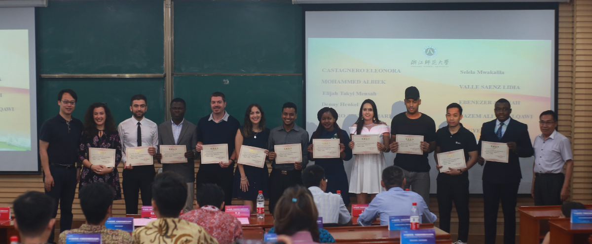 随后,本科留学生代表LOUIS MEGASURYA以及硕士留学生代表ACQUAH EBENEZER分别发言。他们坦言求学之路充满艰辛,但收获丰富,感谢自己选择了浙师大,更感恩学校、学院等各方大力支持,他们代表与会学生承诺将好好工作、好好学习、回报母校、回报国家。