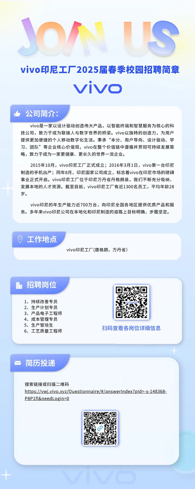 vivo印尼工厂——成本管理专员、产品电子工程师等