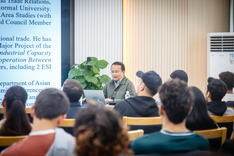 3月25日,由浙江师范大学国际学生国情教育名师工作室主办的“读懂中国”系列讲座(第九期)成功举办。我校经济与管理学院(中非国际商学院)黄玉沛教授受邀带来 “中非跨境电商贸易现状” 专题分享。浙江师范大学国际学生管理科科长叶紫平主持,近70名国际学生参加。
